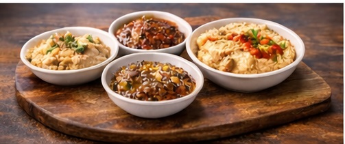 Small dishes like hummus, eggplant salad, and yogurt-based dips.