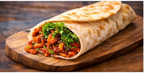 A wrap filled with finely chopped beef or lamb, tomatoes, and parsley.