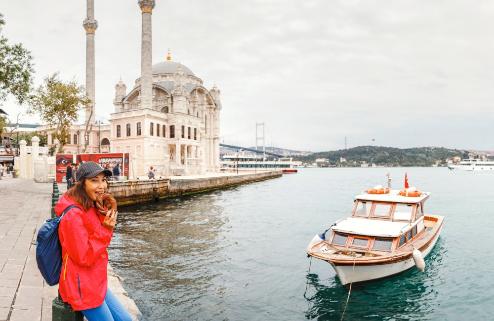 Continue your journey with a delightful exploration of Ortaköy district. Admire the Neo-Baroque style of the Ortaköy Mosque, an ornate masterpiece located on the Bosphorus waterside. Its captivating design makes it a prominent landmark visible from passing boats, offering a picturesque setting.